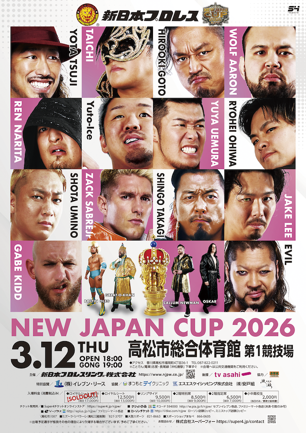 □『NEW JAPAN CUP 2026』高松大会は2026年3月12日(木)! 詳細はコチラ!スーパーフォー先行販売は1月18日(日)12:00〜1月23日(金)23:59まで。一般発売は1月24日(土)10:00〜3月5日(木)23:59まで